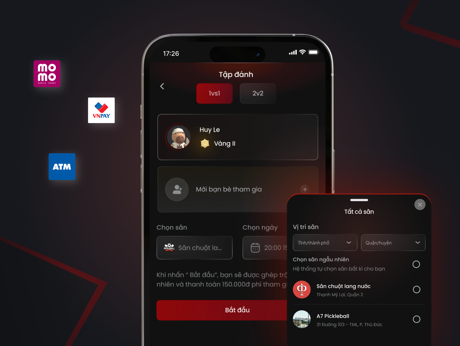 Ứng dụng cung cấp tính năng “Tìm bạn chơi” và “Tạo kèo” để bạn dễ dàng kết nối với những người chơi khác. Bạn có thể lựa chọn dựa trên vị trí, trình độ, hoặc thời gian phù hợp.