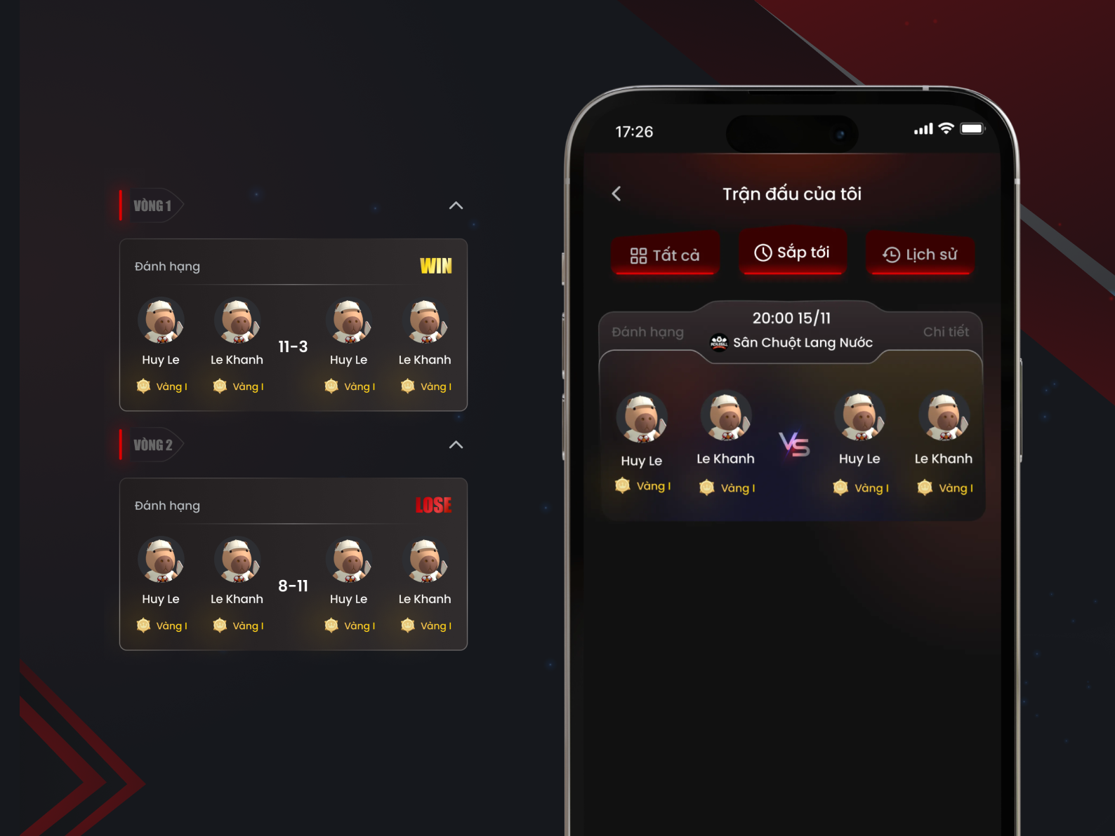Các chế độ đánh thường, thi đấu thăng hạng, custom cùng với dịch vụ book trọng tài và huấn luyện viên sẽ giúp bạn trải nghiệm thể thao một cách toàn diện nhất.