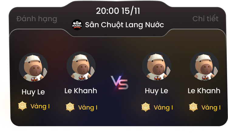 Ghi nhận kết quả thi đấu, tích lũy điểm số và thăng hạng trên bảng xếp hạng. Chia sẻ thành tích với bạn bè và cộng đồng.